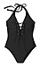 This one-piece bathing suit features a plunging neckline with lace-up detail and halter straps. The Emery is made with recycled material and offers built-in shelf support.