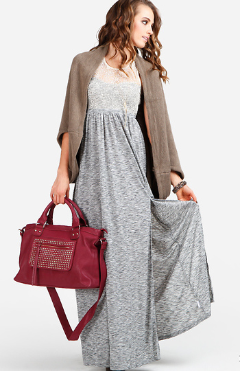 Today we're planning on maxing out our cards...don't worry, we're talking about cardigans, not our visas! Create a cozy chic, yet still subtly sexy look by pairing a maxi dress with a cocoon cardigan. A studded handbag and stacked jewels are right on trend for an urban boho look.