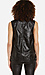 Vegan leather vest featuring an off-center front zipper closure, button detail on lapels, adjustable button tabs on sides of hem, two welt hip pockets, and full lining. By MINKPINK. closure