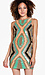 Sleeveless shift dress featuring embroidery, beading, and sequins that form a zigzag design on front, cloth back, full lining, and an exposed back zipper.