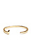 Cuff bracelet featuring a curved railroad spike design and engraved logo and arrows on side. By Giles & Brother.