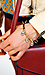 Rope friendship bracelet with gold rhinestone-encrusted skulls and spikes dangling. Draw string closure to adjust.