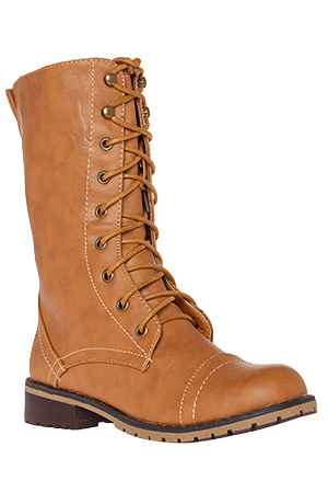 Black lace up boots. Size zipper on inside of shoe. Small heel. Faux leather.