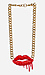 Chain link necklace featuring a rhinestone encrusted lip pendant with dripping detail on bottom lip. By DAILYLOOK.