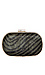 Box clutch featuring zebra printed faux pony hair on front and back, small gold colored studs around edges, push lock closure, and a detachable chain link shoulder strap.