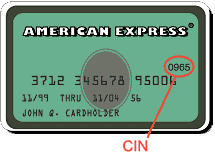 | The American Express Card Identification Number (CIN) is a four digit number found on the front of the U.S. issued American Express Card (including Optima). For the American Express card the four digit number is displayed on the front of the card, just above and to the right of the credit card number. For the Optima card it is displayed on the front of the card, to the left and just above the credit card number. American Express and DailyLook.com are now using this number for added security and customer protection. |